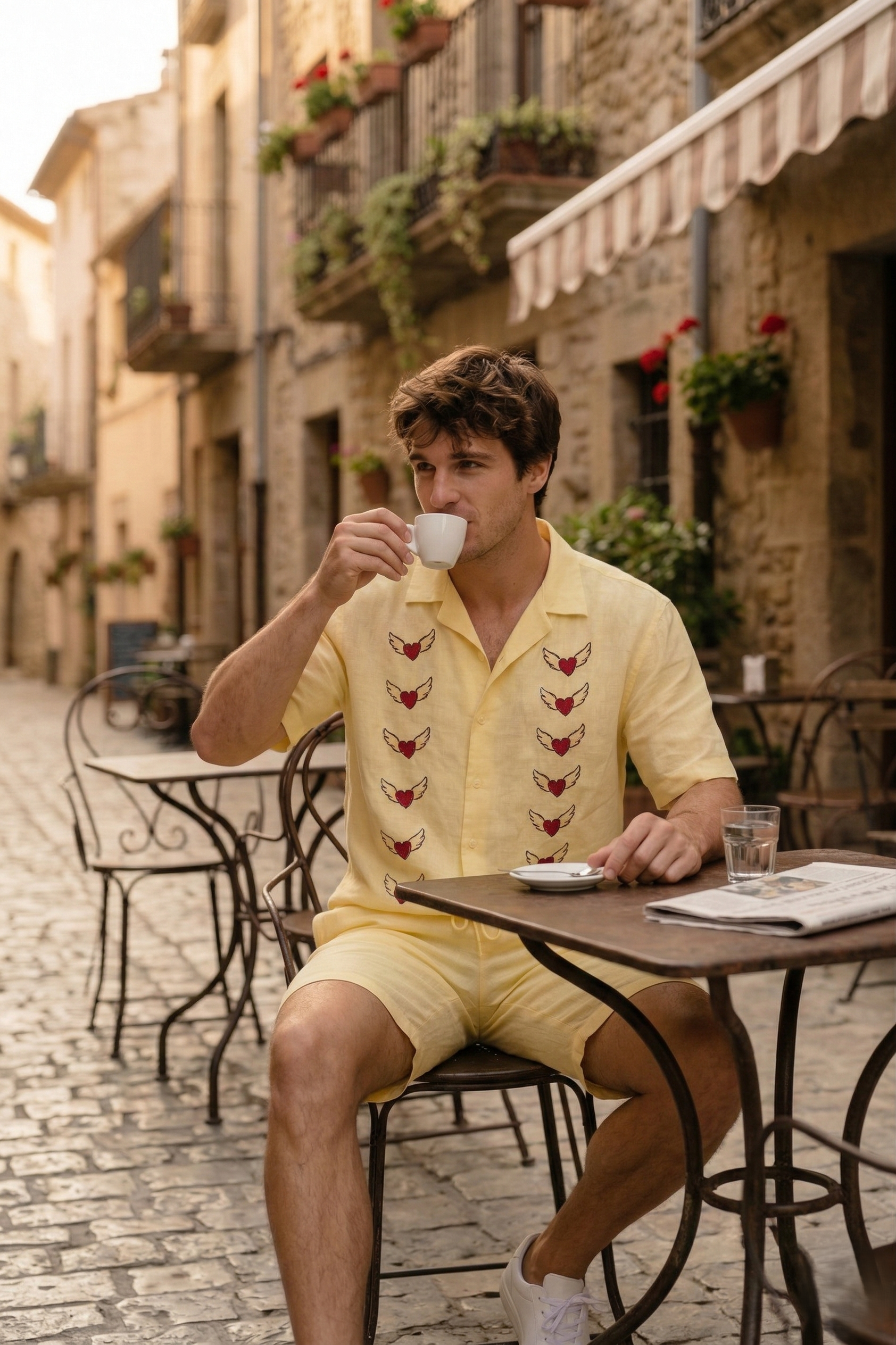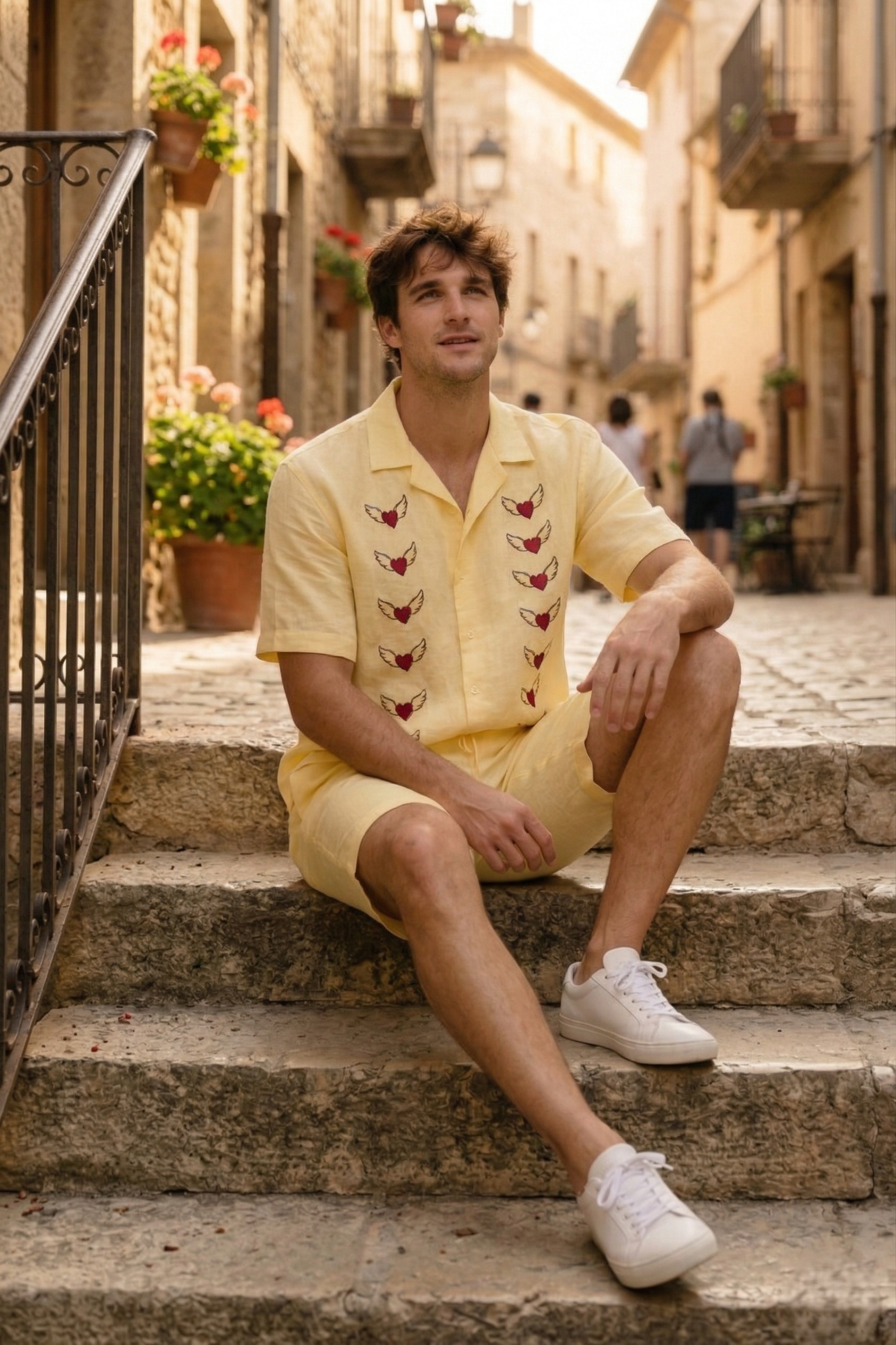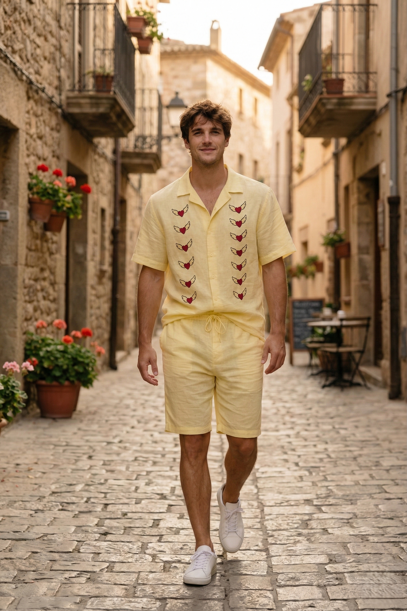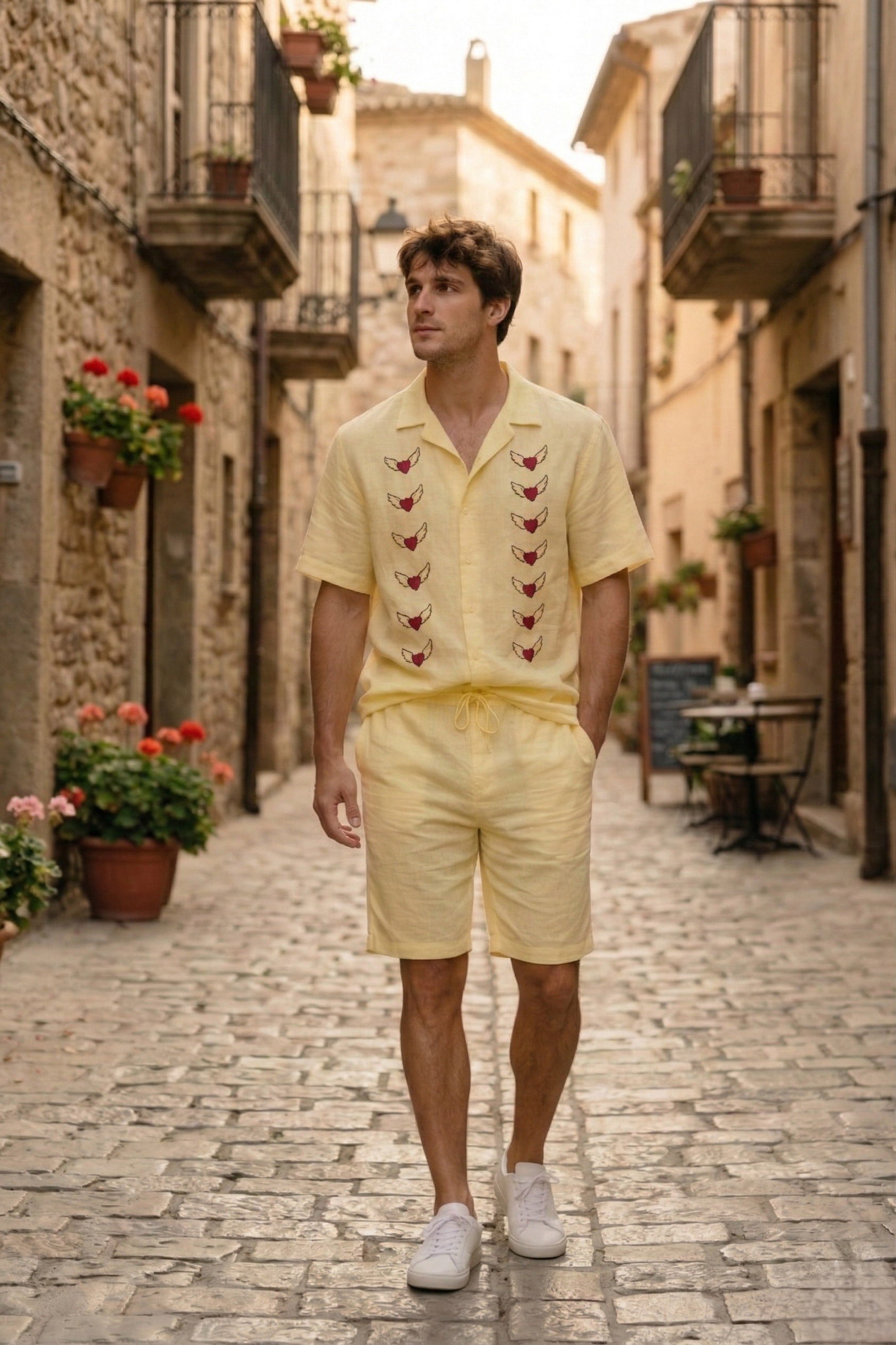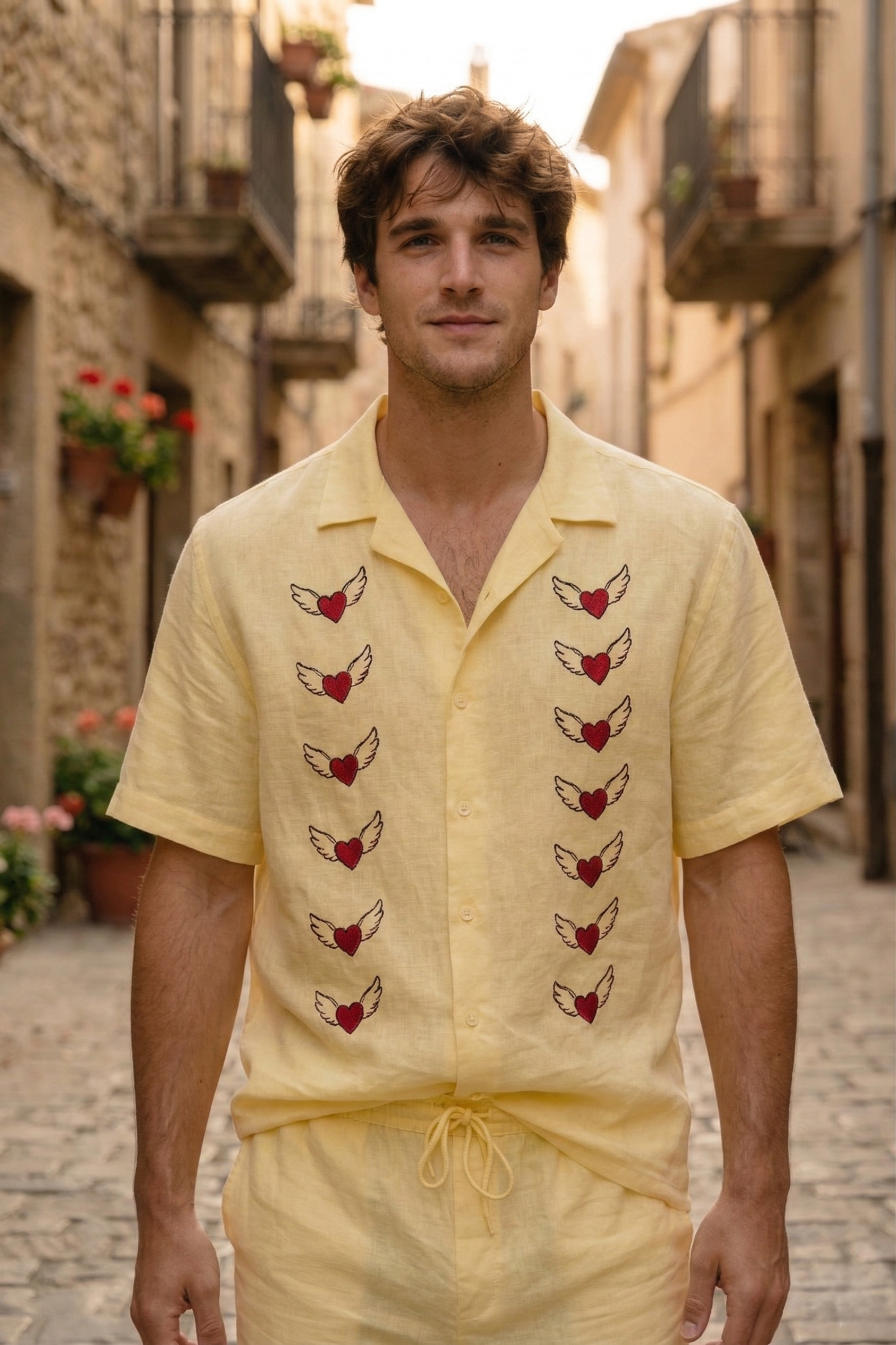 Hand Painted Heart Linen Shirt for Men – Handmade Resort Wear