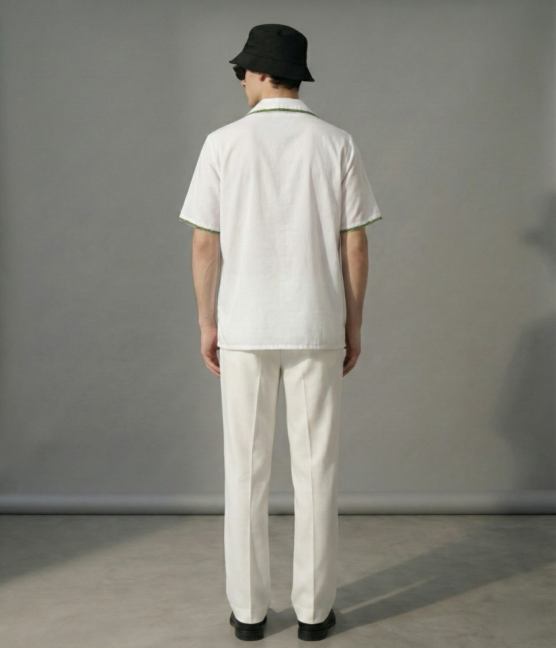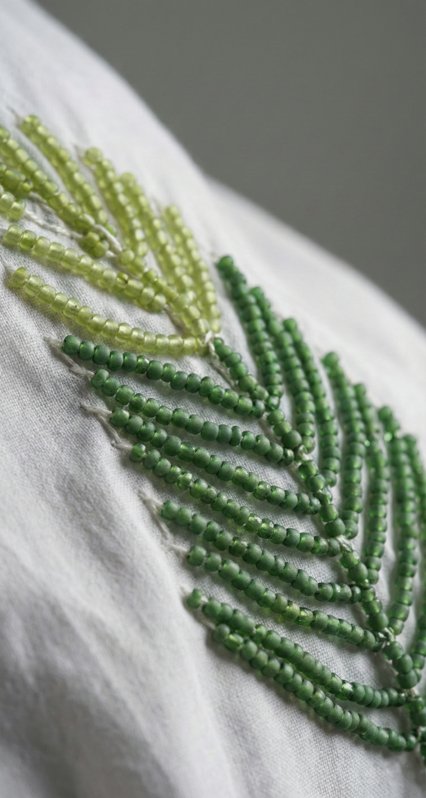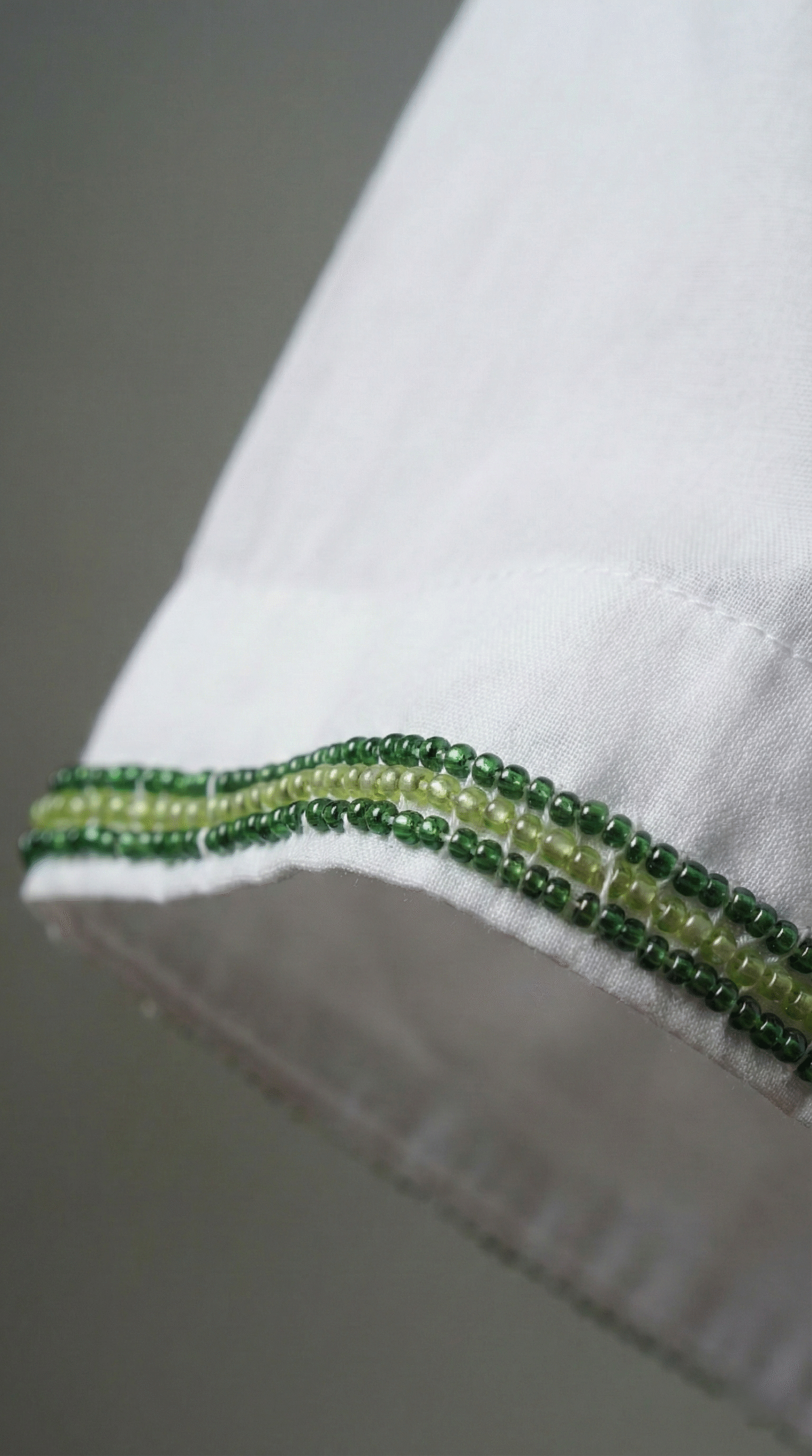 Handmade 100% cotton shirt with elegant leaf embroidery. Dry clean only.