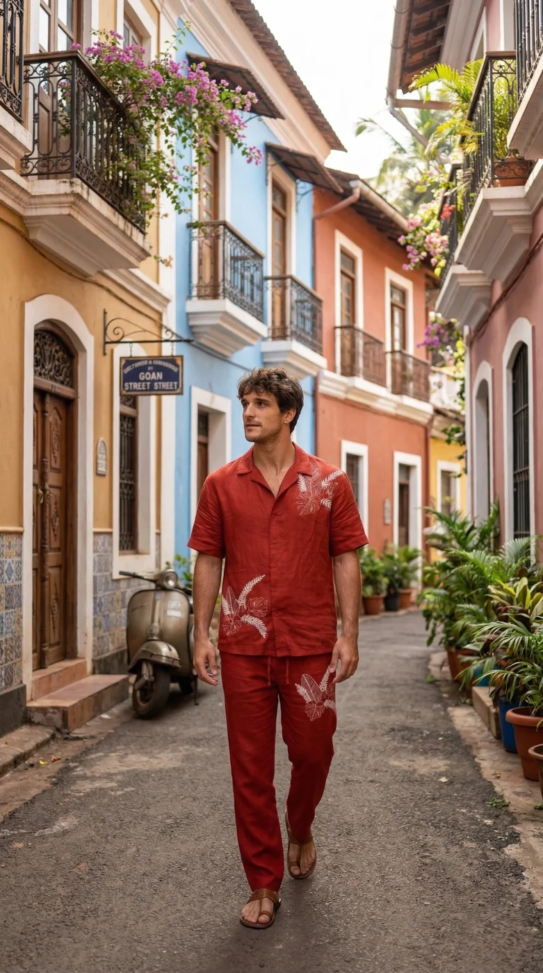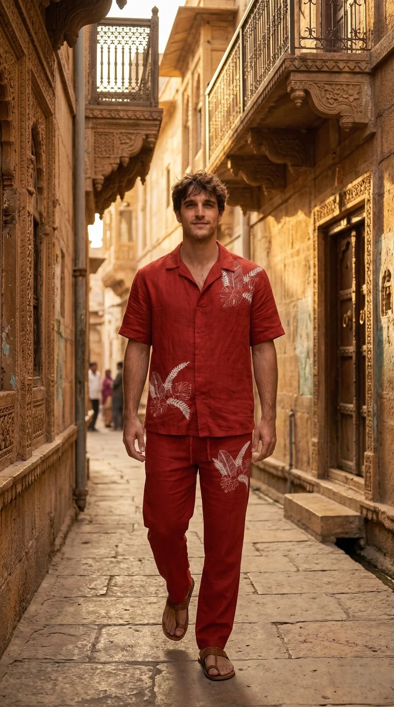 Designed for men who love artistic and luxury fashion, this breathable linen cotton shirt and pant set is perfect for vacations, resort wear, and summer styling.